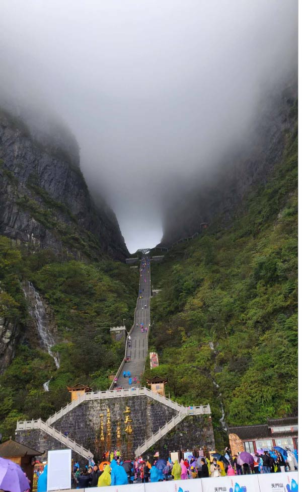 站在洞口,俯視天梯,上面依然在堅(jiān)持努力爬行的人們,大概是懷著一種信仰,相信爬完這999級臺階后,會有長長久久的幸福!