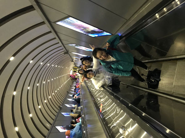 抬頭仰望這999個幸福的天梯,看著那上面星星點(diǎn)點(diǎn)登梯的人,果然,大部分人還是習(xí)慣安逸舒適的,選擇乘坐電梯上去。